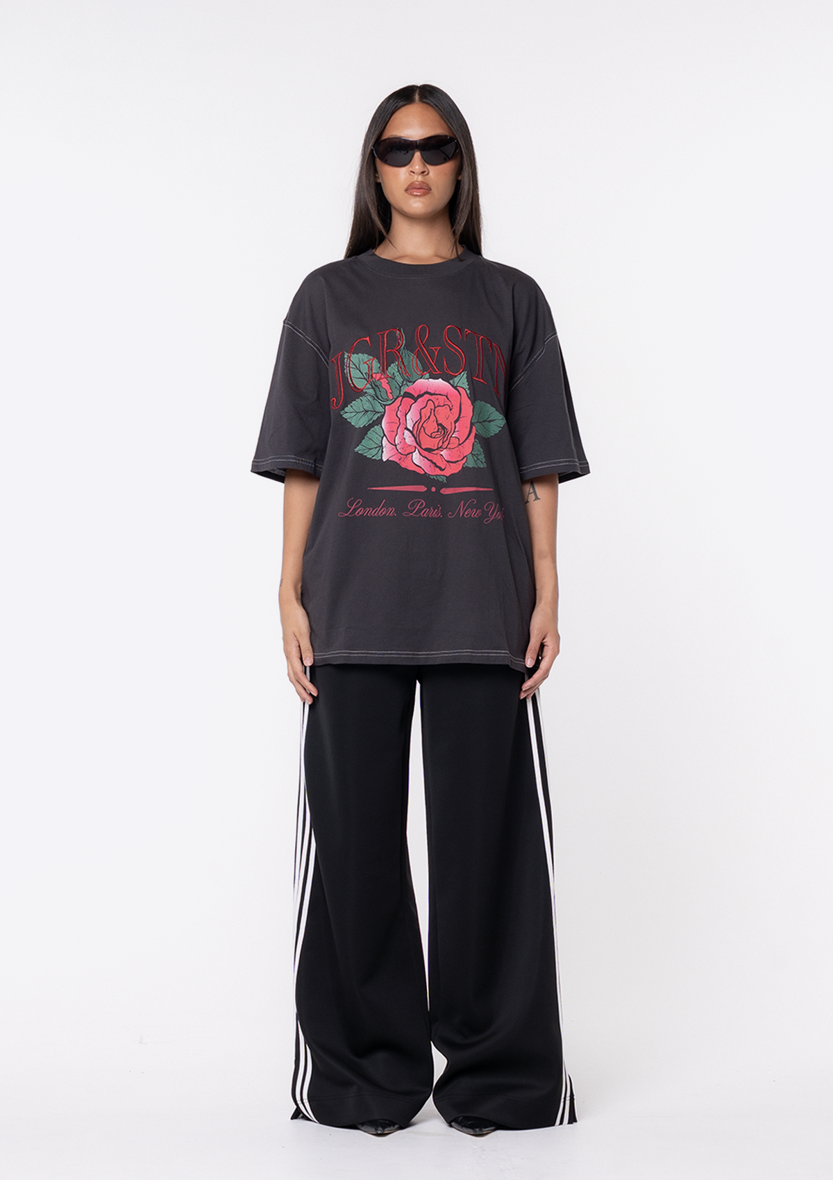 Introducing the JGR & STN Blair Oversized Tee. Crafted in a soft, vintage-feel fabric and featuring printed graphics and embroidery logo across the front.