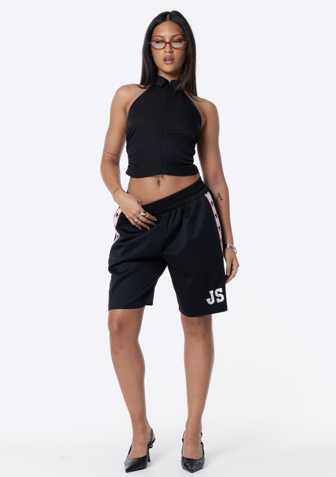 Introducing the JGR & STN Blaze Top. A halter neck design featuring a tailored collar and double zip down the centre. Designed to elevate and be worn from day to night.
