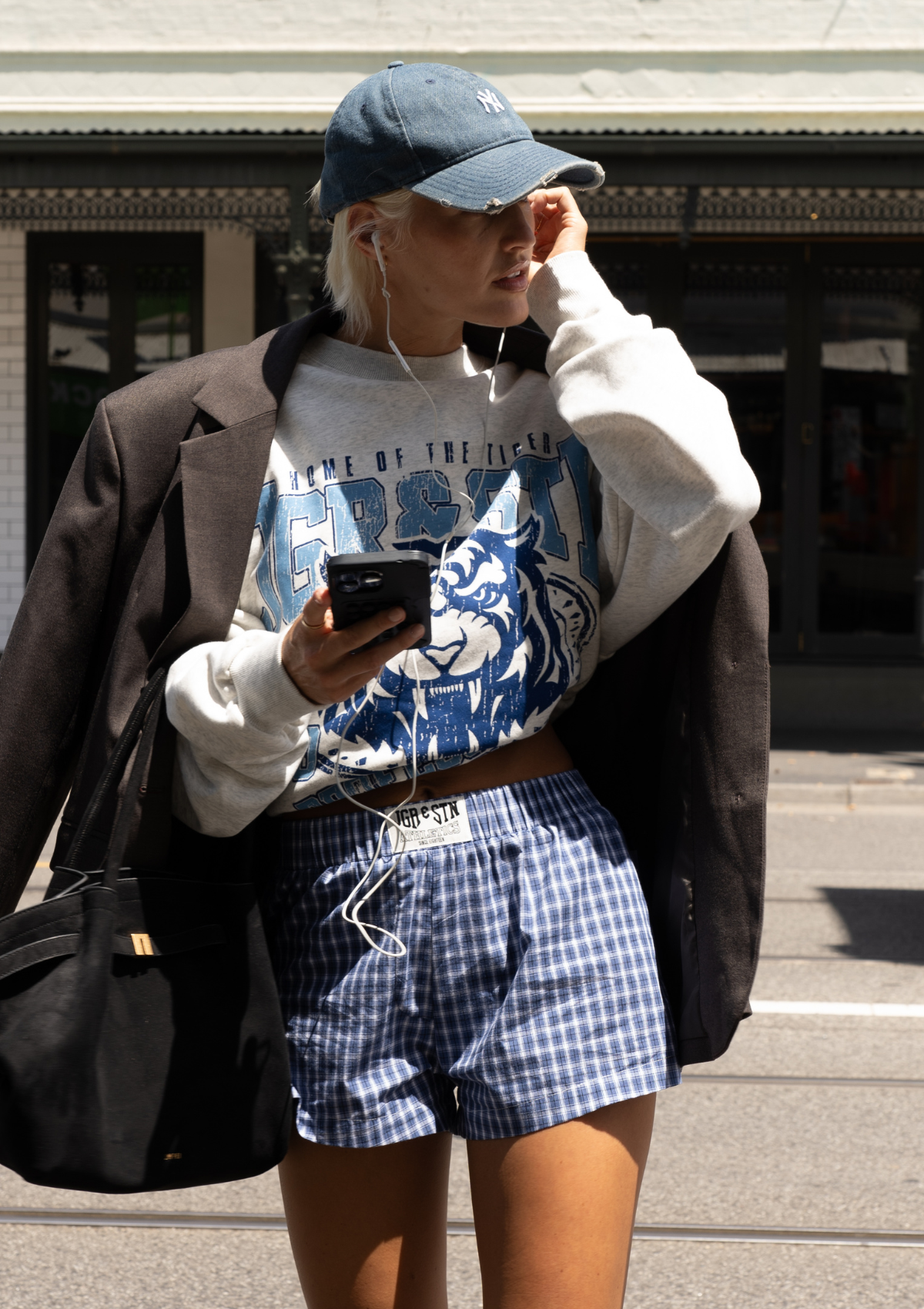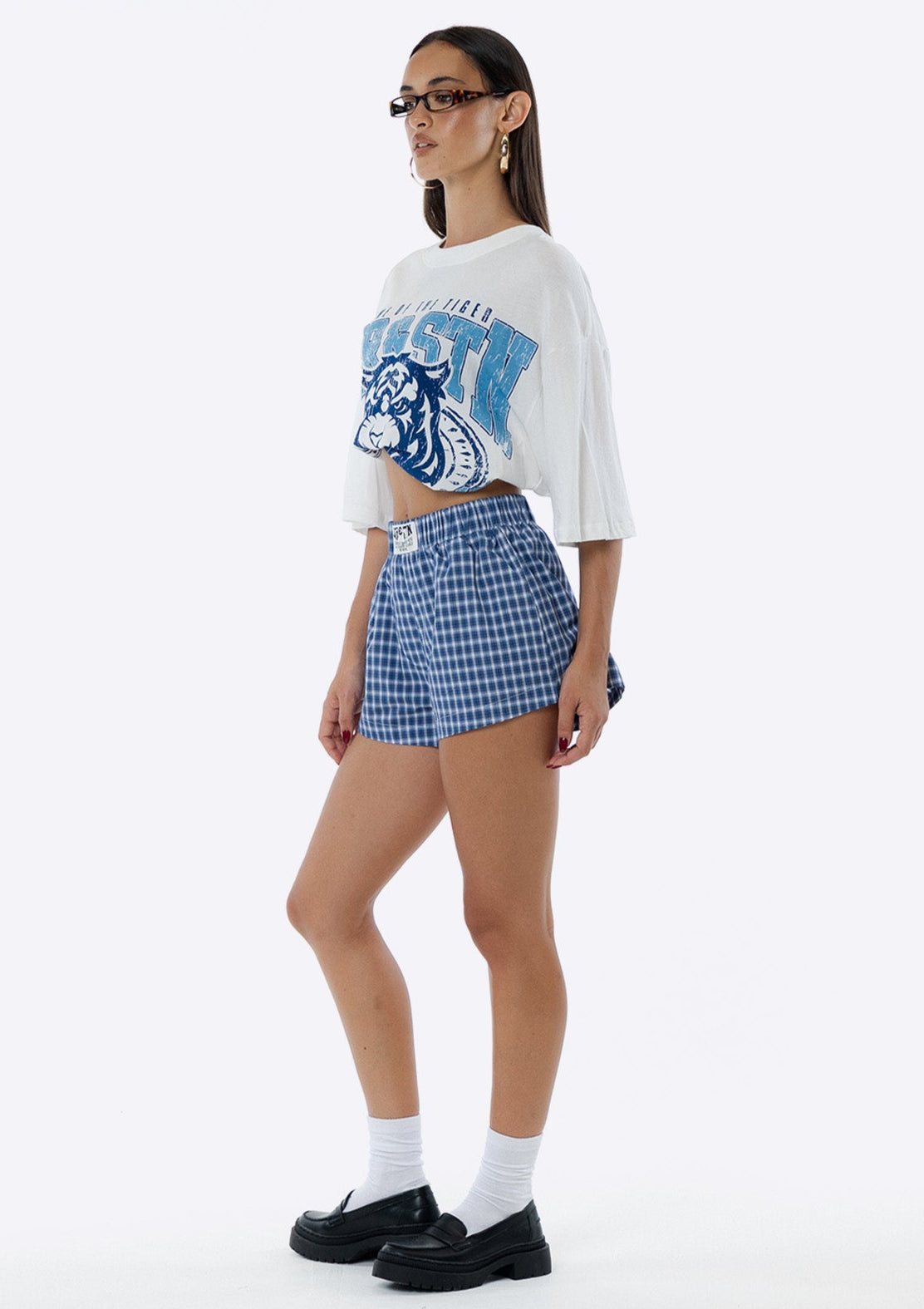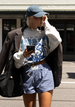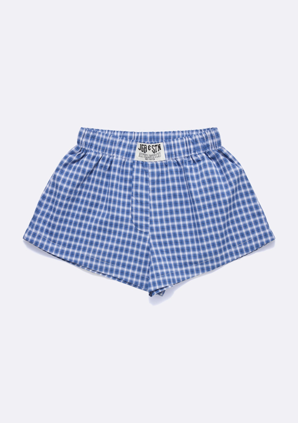 Introducing the JGR & STN Ella Boxer Shorts. The perfect boxer short designed to be comfortable and elevate an outfit. Crafted in a blue check fabric.