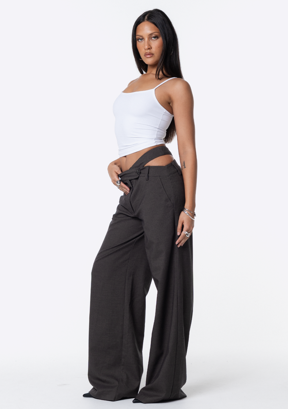 Introducing the JGR & STN Frankie Asym Pant. An old favourite back by popular demand. The perfect tailored pant with an asymmetric waistline and cut out feature on the hip.