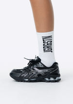 Introducing the JGR & STN Logo Socks. A ribbed crew length sock with JGR & STN branding.