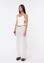 Introducing the JGR & STN Lucia Pant. Designed to be an easy to wear crochet pant. Featuring a thin waistband with adjustable side tie closures.