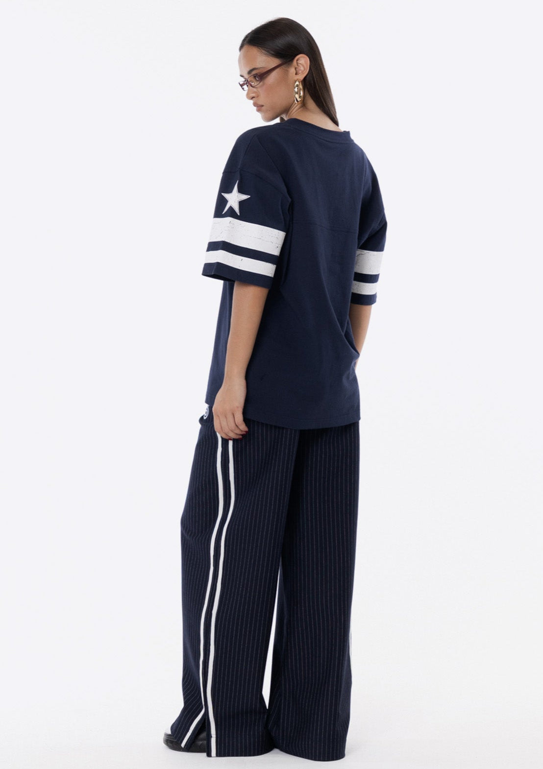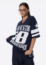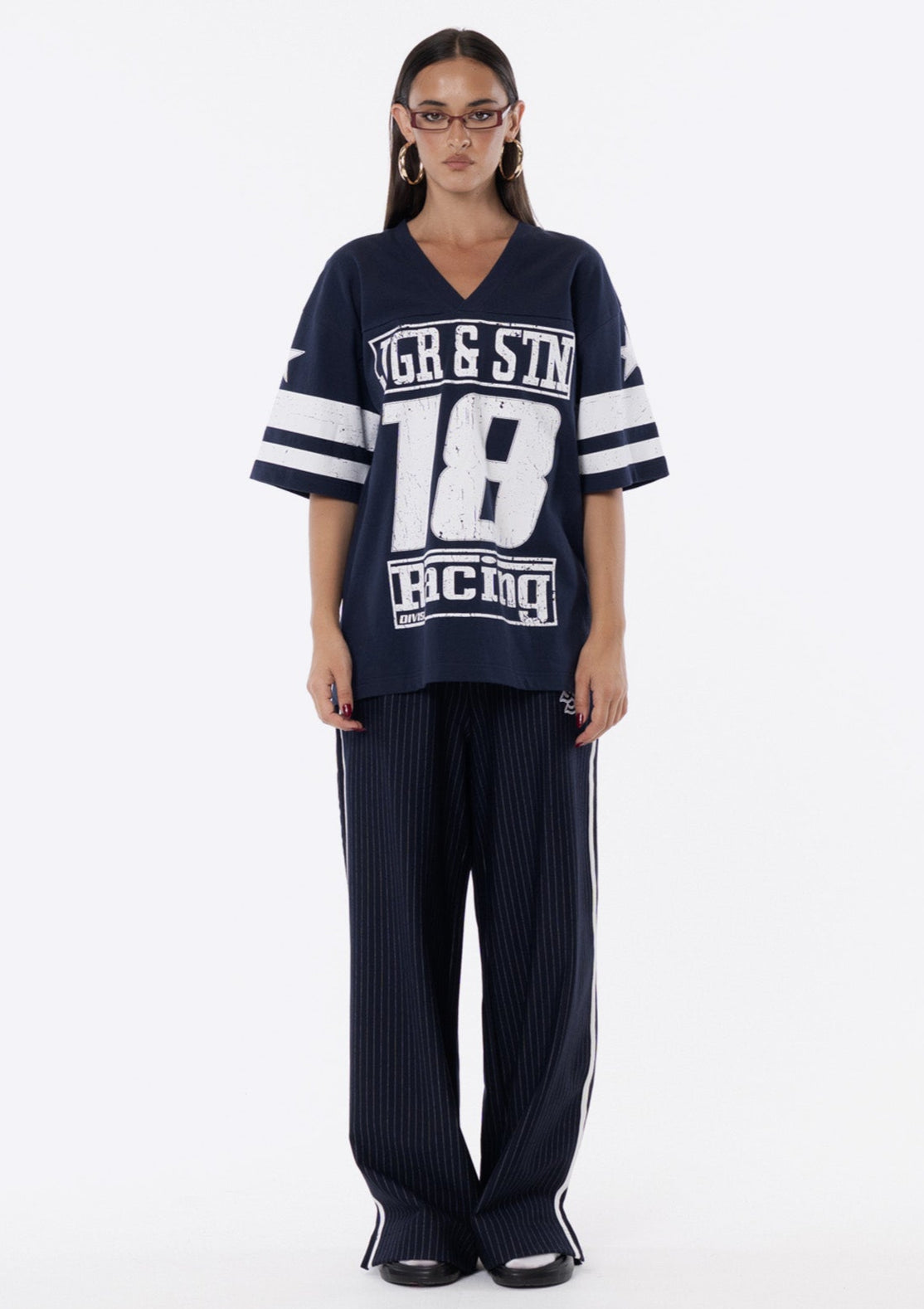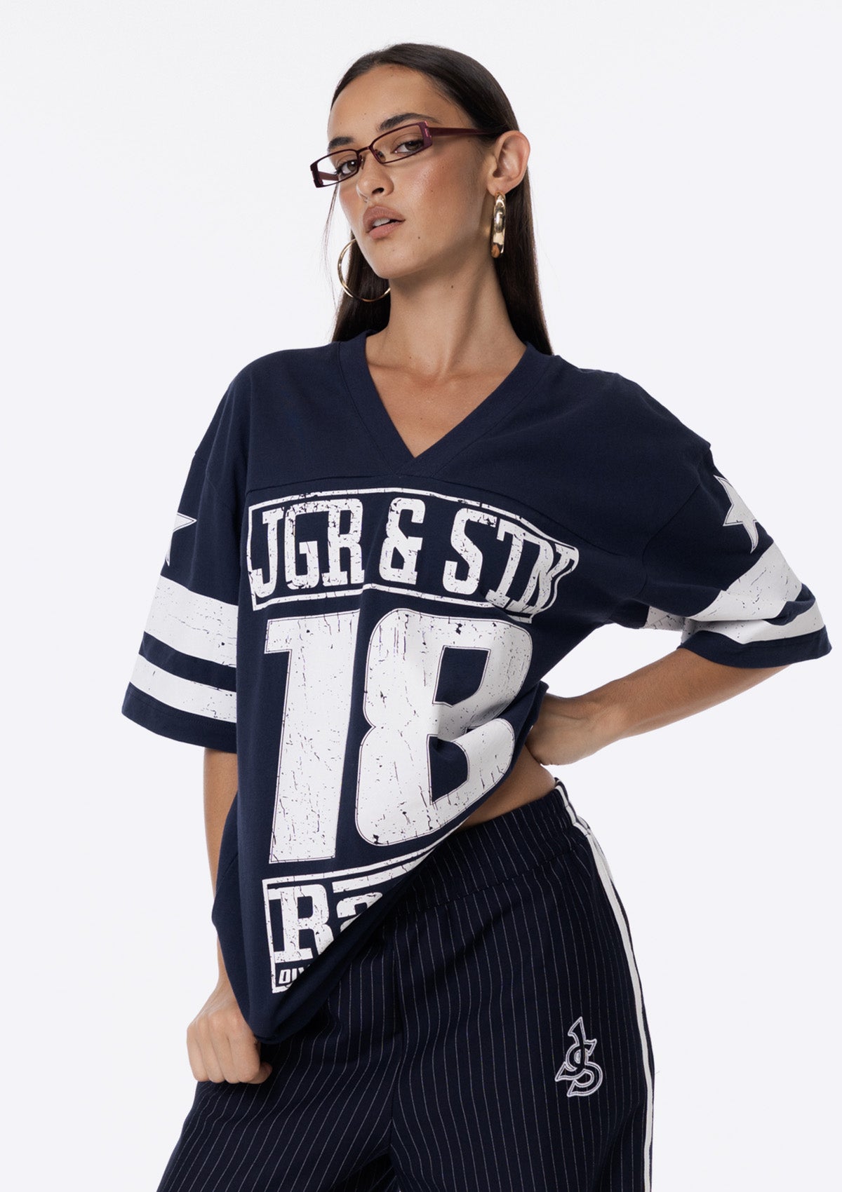 Introducing the JGR & STN Polly Oversized Tee. Inspired by our favourite vintage sports jerseys. An oversized design with printed branding across the front.