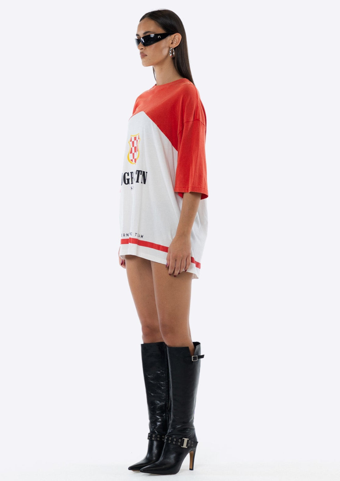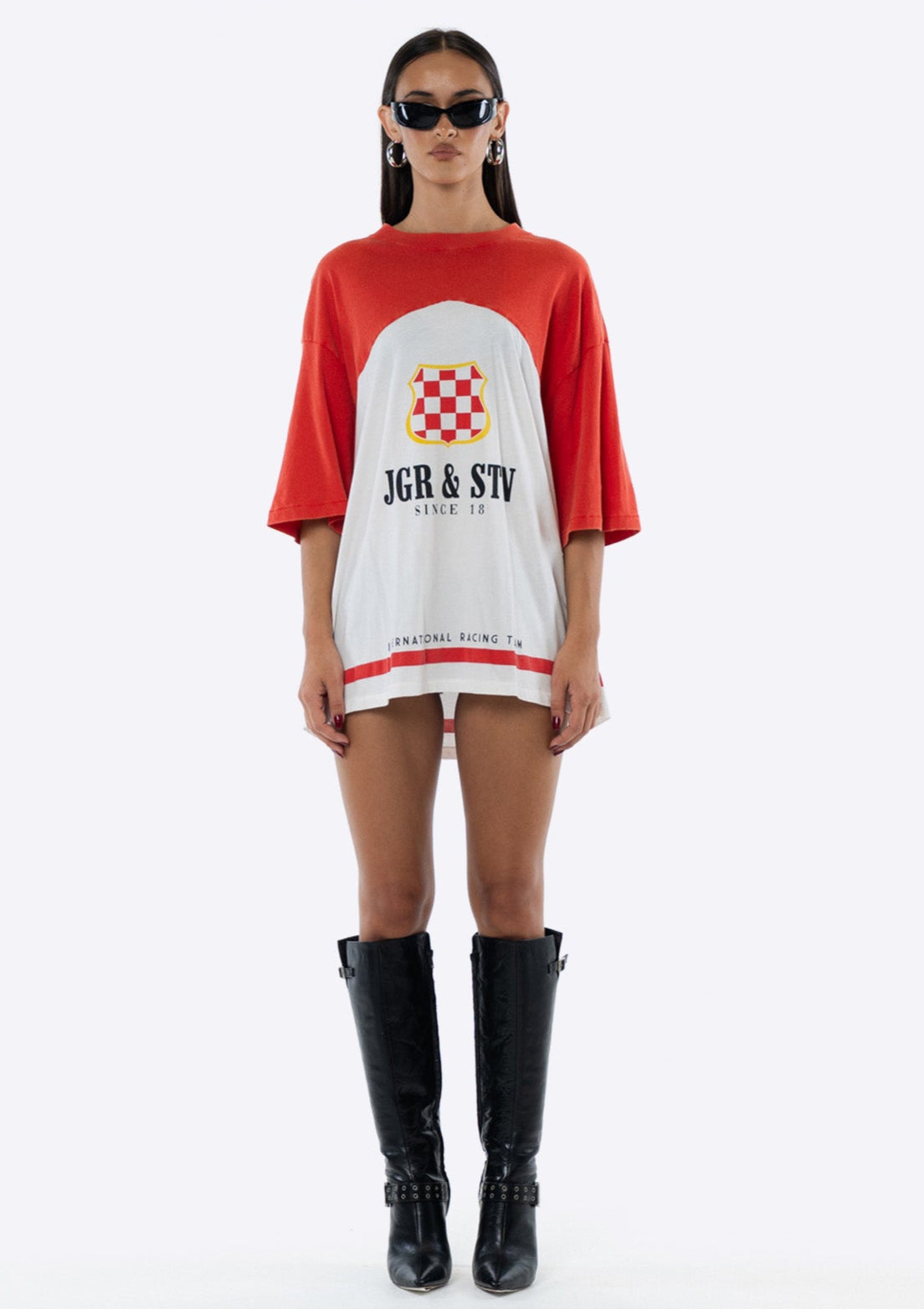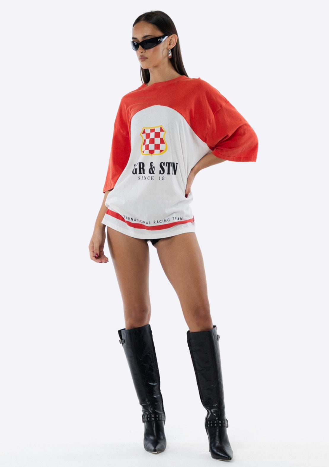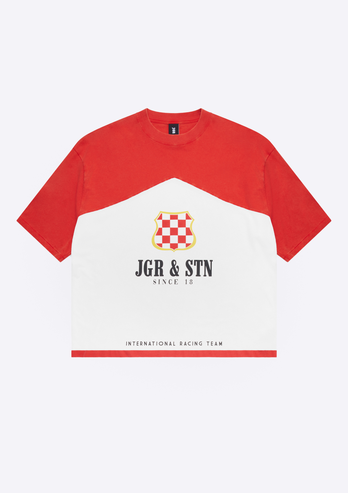 Introducing the JGR & STN Raceway Oversized Tee. Crafted in a soft, vintage-feel fabric and featuring printed graphics on the front.