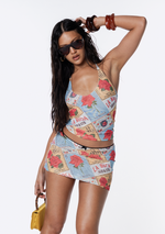 Introducing the JGR & STN Valeria Mini Skirt. Crafted in a custom printed mesh fabric, fully lined. Pairs perfectly with the Valeria Halter Top.