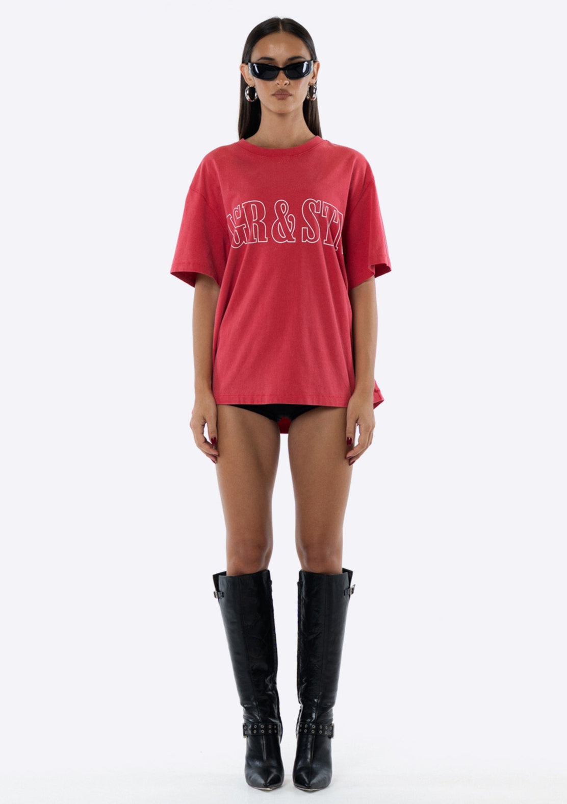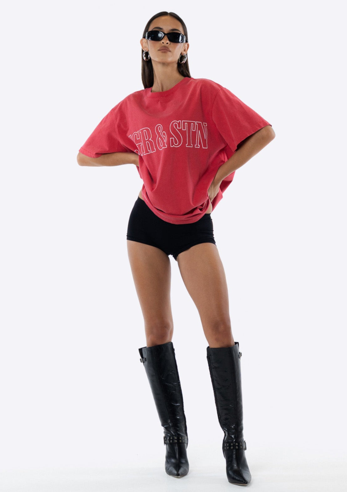 Introducing the JGR & STN Arizona Oversized Tee. This tee is an oversized fit and features JGR & STN branding across the front. A comfortable, everyday staple. Due to the nature of washed fabrics, their may be slight colour variances between individual products.