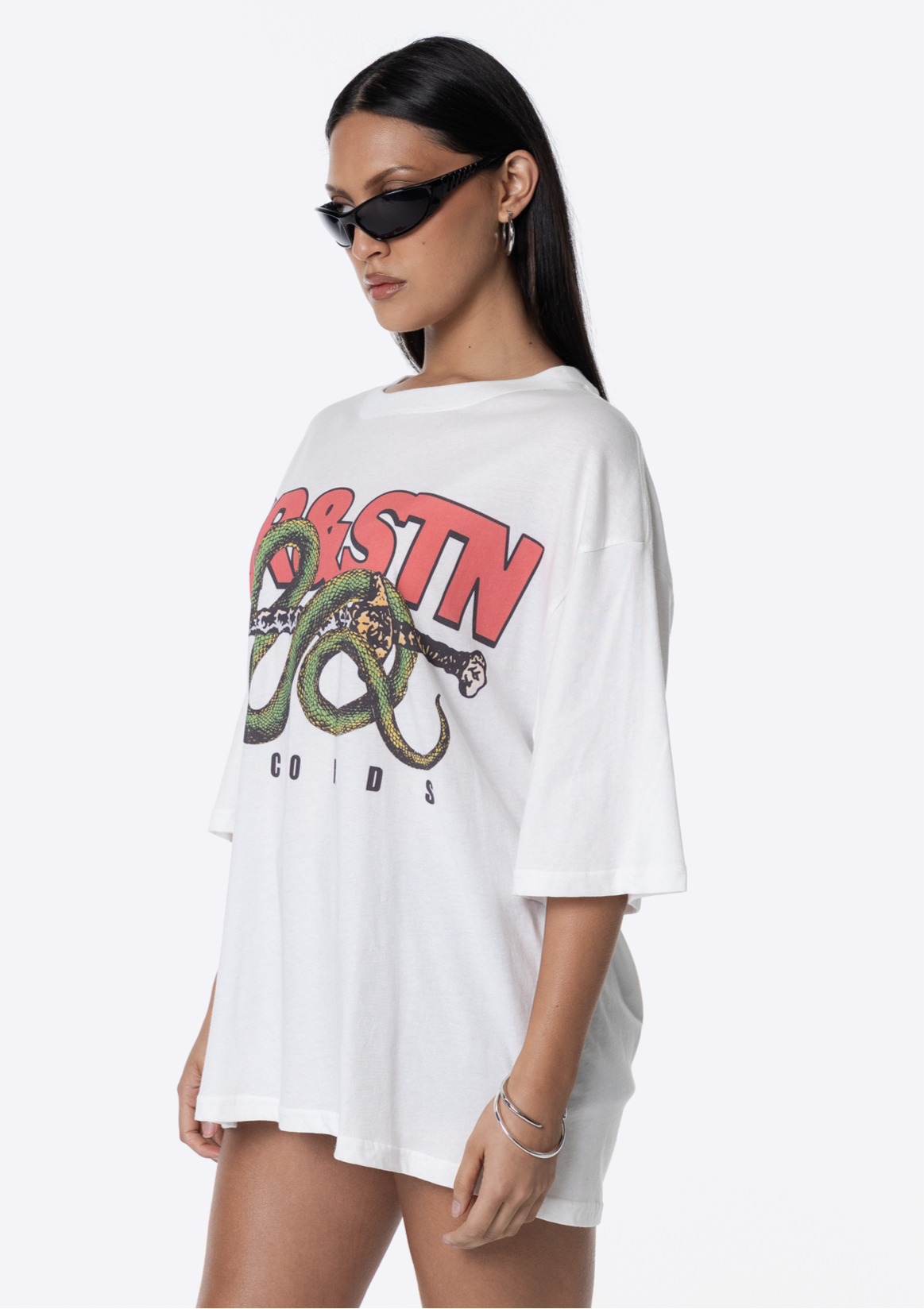 Introducing the JGR & STN Records Oversized Tee. Crafted in a soft, vintage-feel fabric and featuring printed graphics on the front.