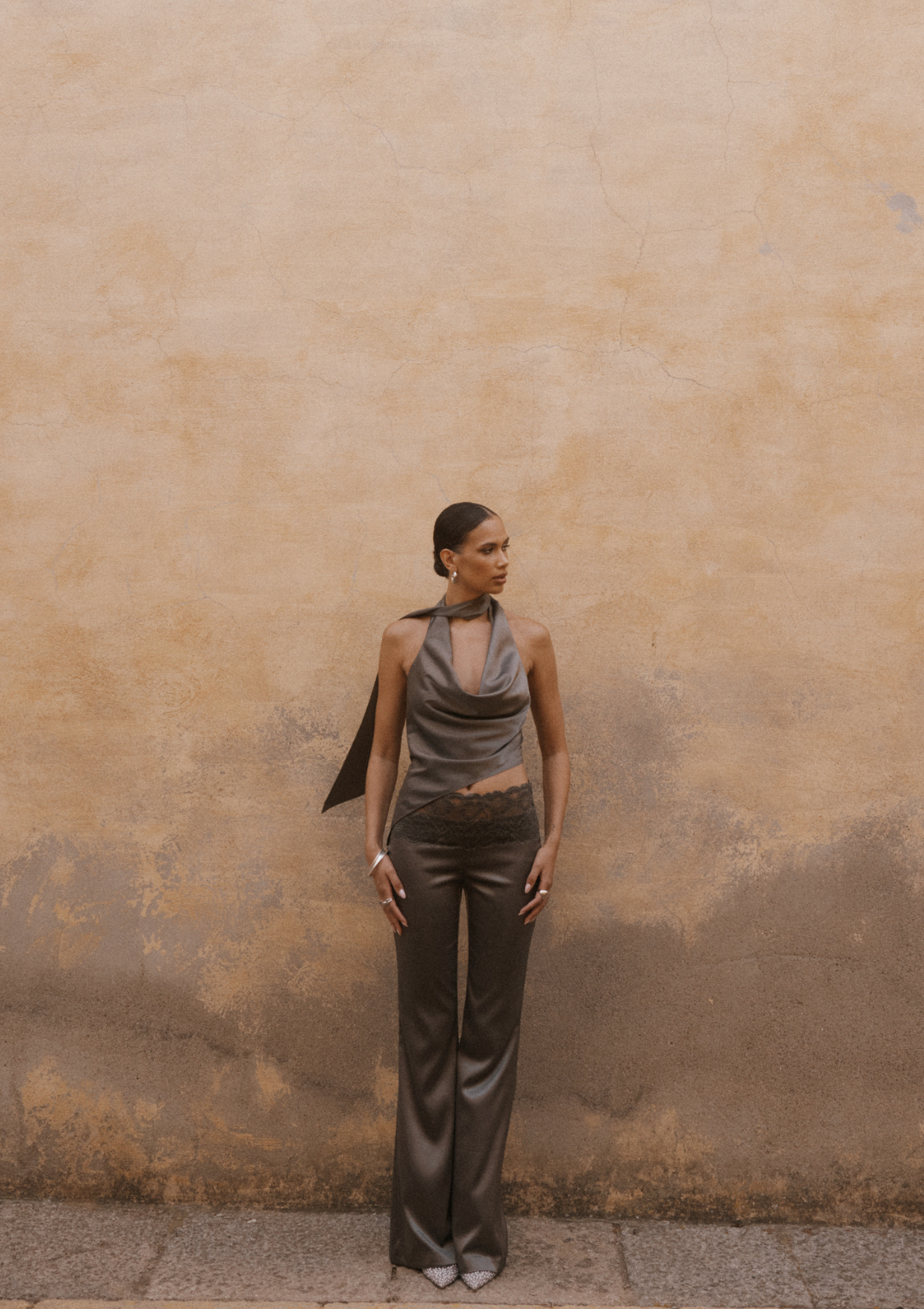 Introducing the JGR & STN Hamilton Lace Pant. Made for Anna with love. The Hamilton Lace Pant is crafted from a silky, slightly stretch fabric with lace detailing along the waist. The pants are a flattering bootleg cut and are designed to sit softly along the body. Complete the set with the Hamilton Halter Top.