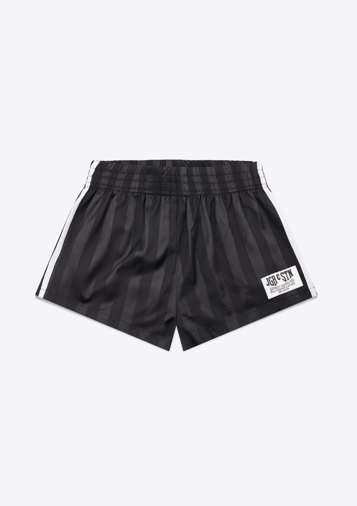 Introducing the JGR & STN Sadie Boxer Shorts. The perfect boxer short designed to be comfortable and elevate an outfit. Crafted in a black on black stripe fabric.