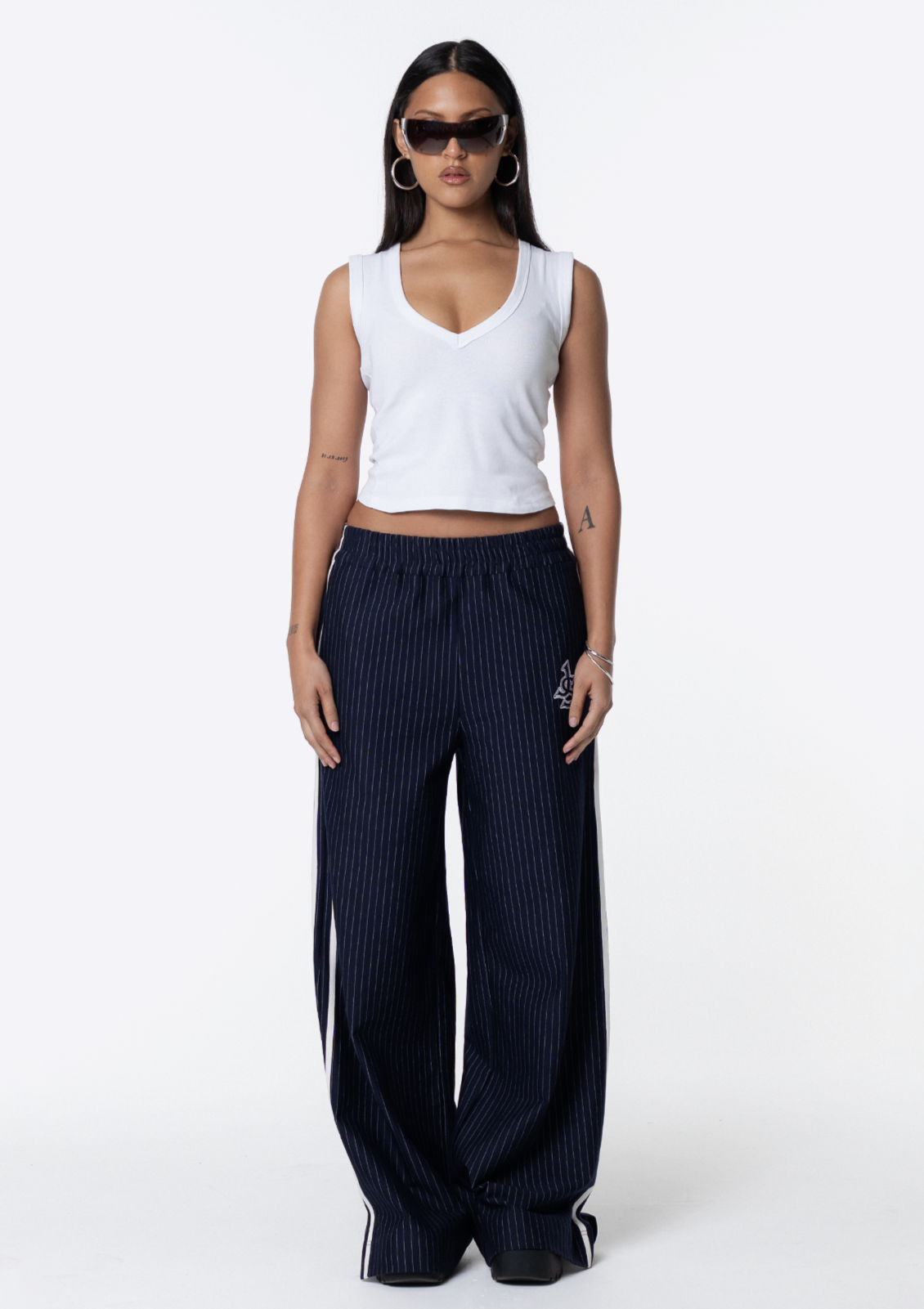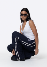 Introducing the JGR & STN Harper Wide Leg Track Pant. An update on our best selling Sadie Wide Leg Track Pant. Designed to be elevated and styled back with everyday basics. Featuring an embroidered J&S logo. Designed with a relaxed, elongated leg. If you'd prefer a shorter fit, try folding the waistband or opting for a size down.