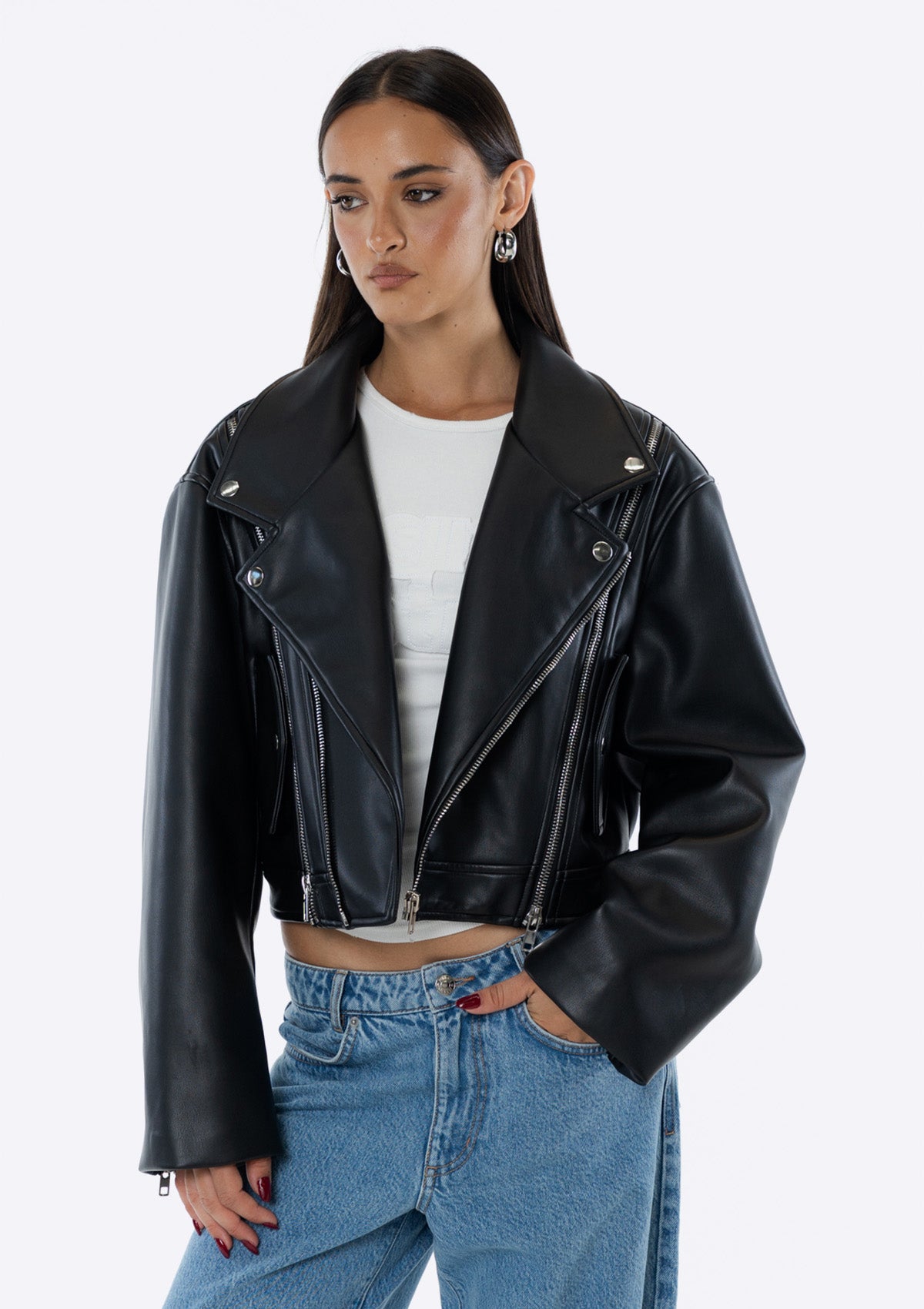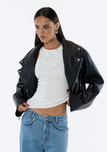 Introducing the JGR & STN Tylah Cropped Jacket. An update on our previously best selling Tylah Jacket. This is in oversized designed crafted in PU leather. A wardrobe staple.
