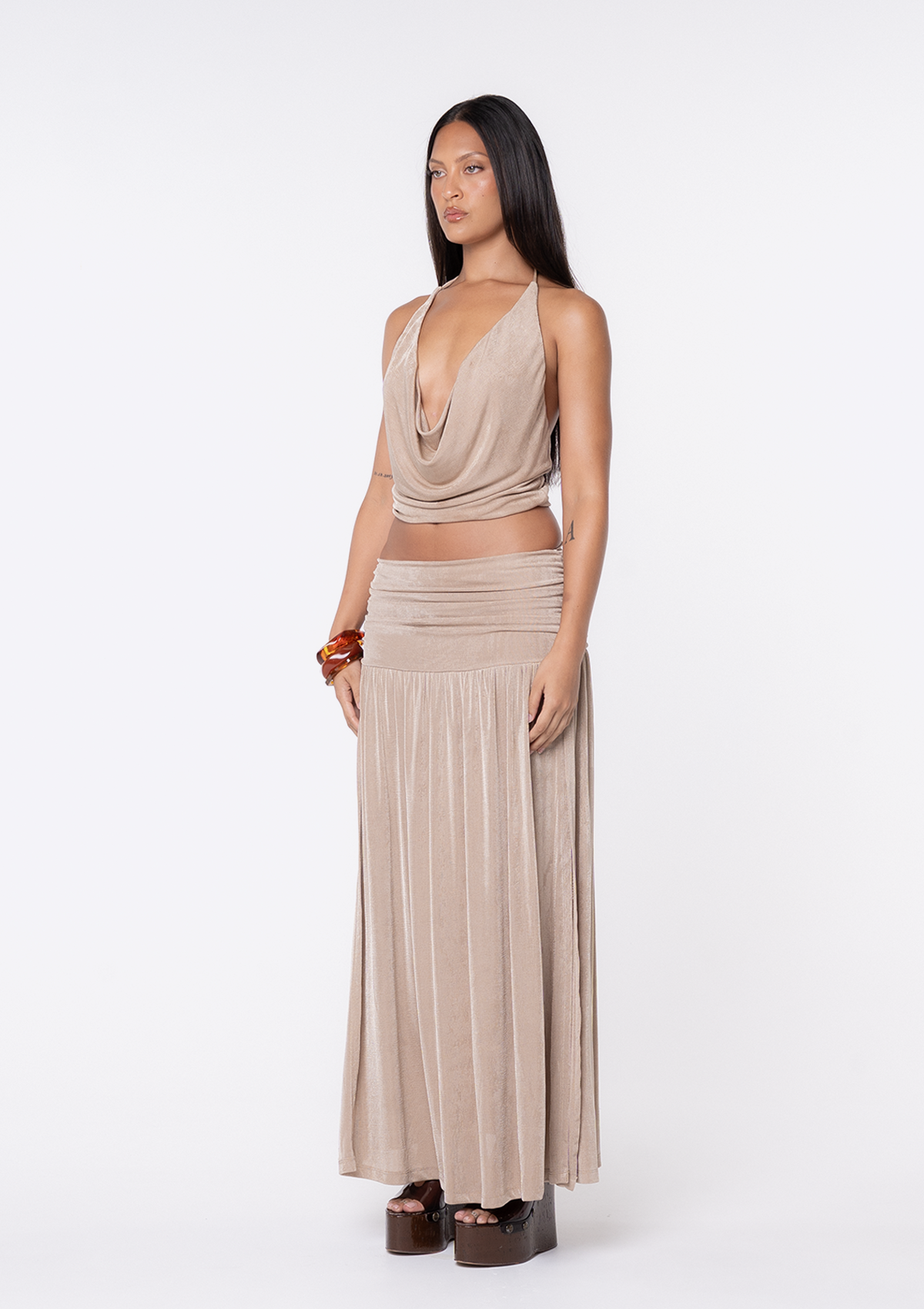 Introducing the JGR & STN Maria Halter Top. Featuring a cowl halter neck and backless design.