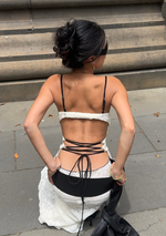 Introducing the JGR & STN Myra Tie Top. Featuring a backless design, contrast straps and adjustable ties. Pairs perfectly with the Myra Maxi Skirt.