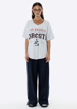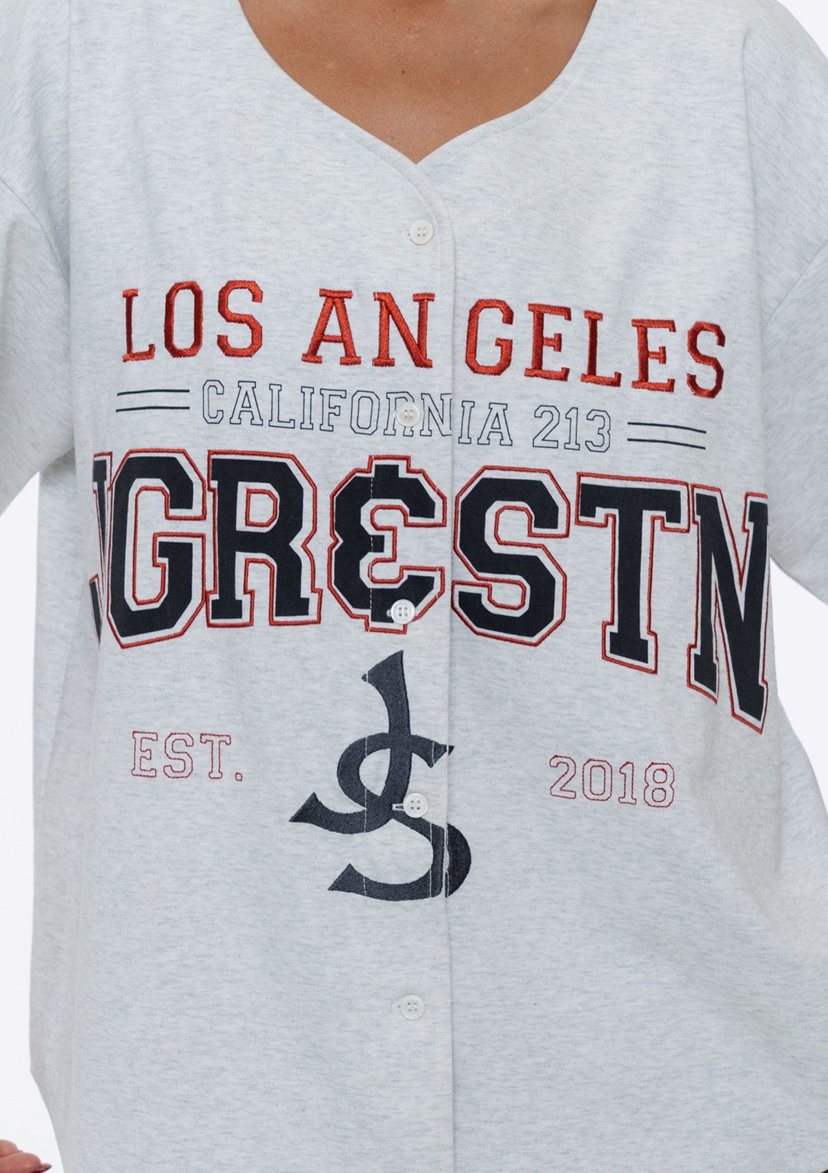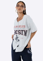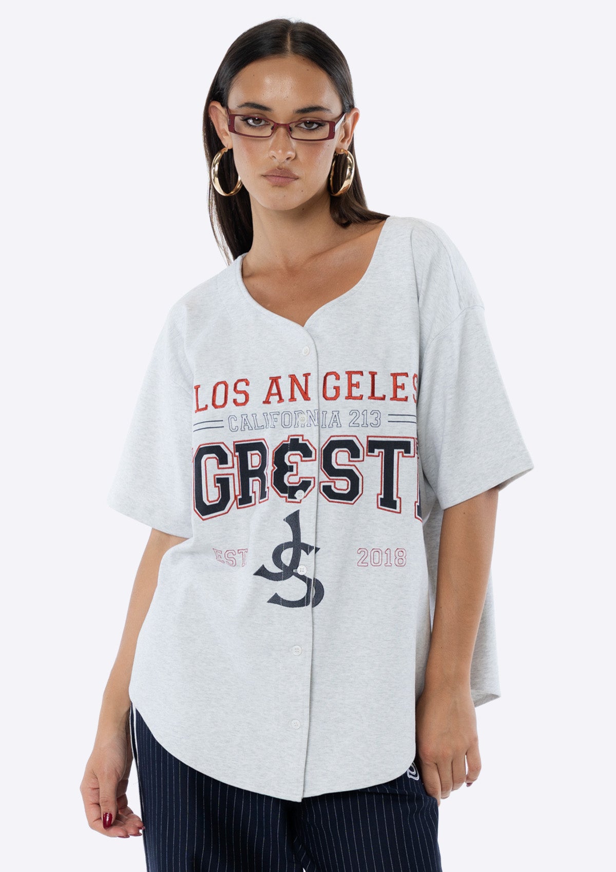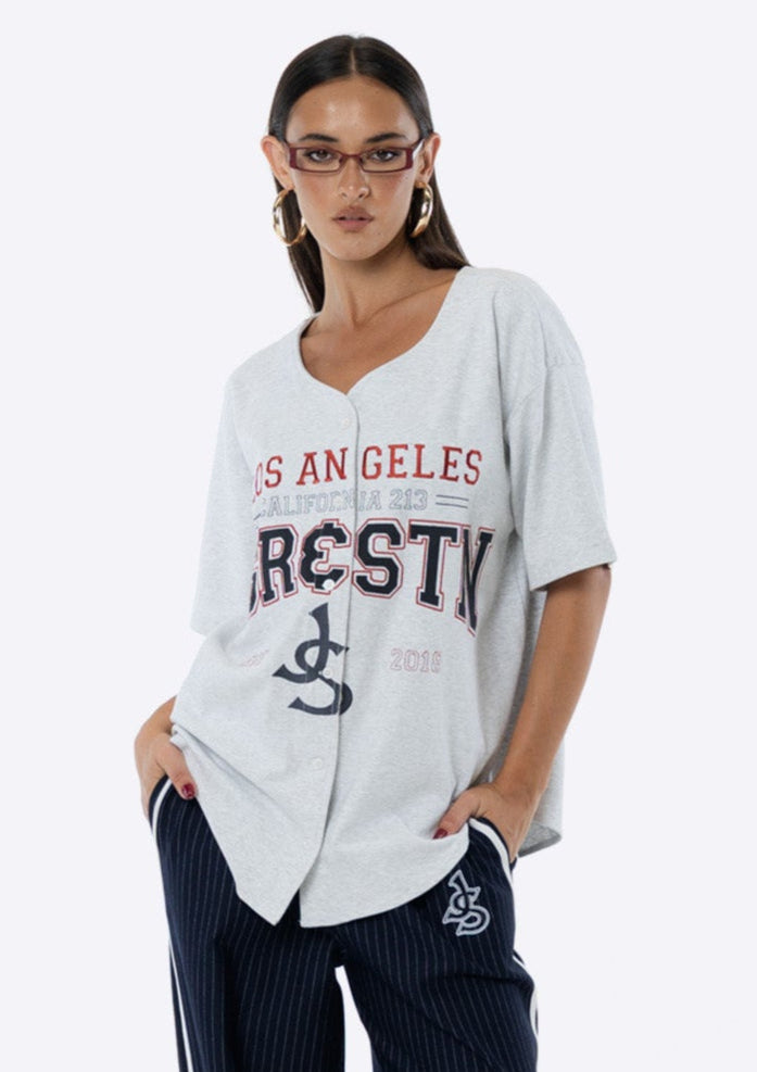 Introducing the JGR & STN Peyton Athletic Jersey. Inspired by our favourite vintage sports jerseys. An oversized design with printed branding across the front.