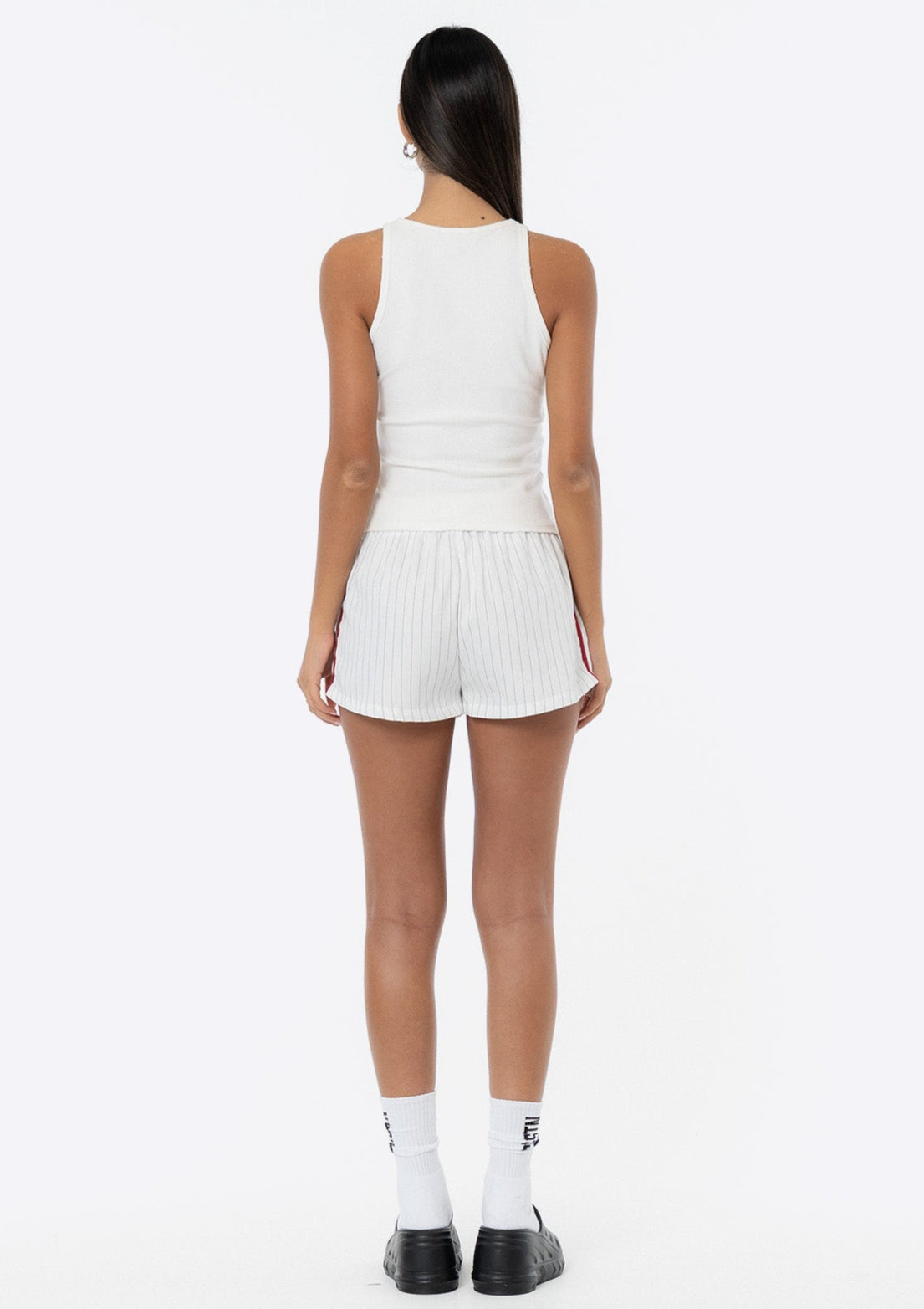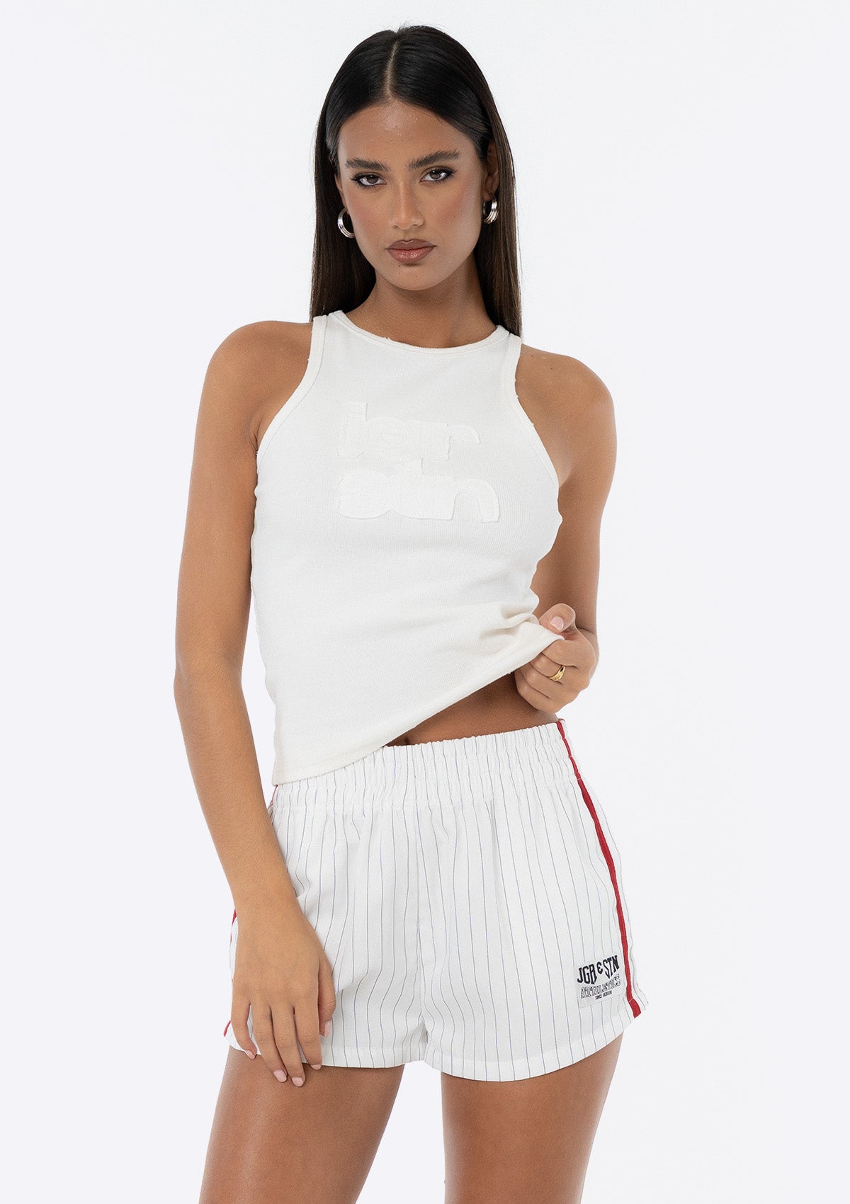 Introducing the JGR & STN Sadie Boxer Shorts. The perfect boxer short designed to be comfortable and elevate an outfit. Crafted in a red pinstripe fabric.