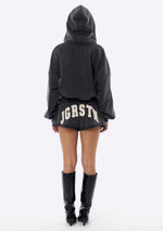 Introducing the JGR & STN Mimi Shorties. Designed to match back with our Mimi Zip Thru Hoodie. A mini short design with applique logo across the back.