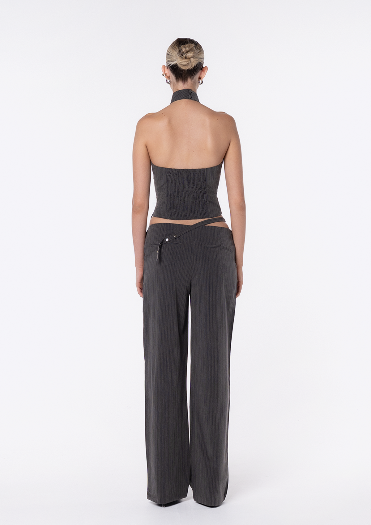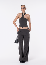 Introducing the Liz Pant. A straight leg pant featuring an asymmetric waistline and button detailing at the back. The Liz Pant is designed to sit low and relaxed - size down for a more tailored fit. Pairs perfectly with our Liz Top.