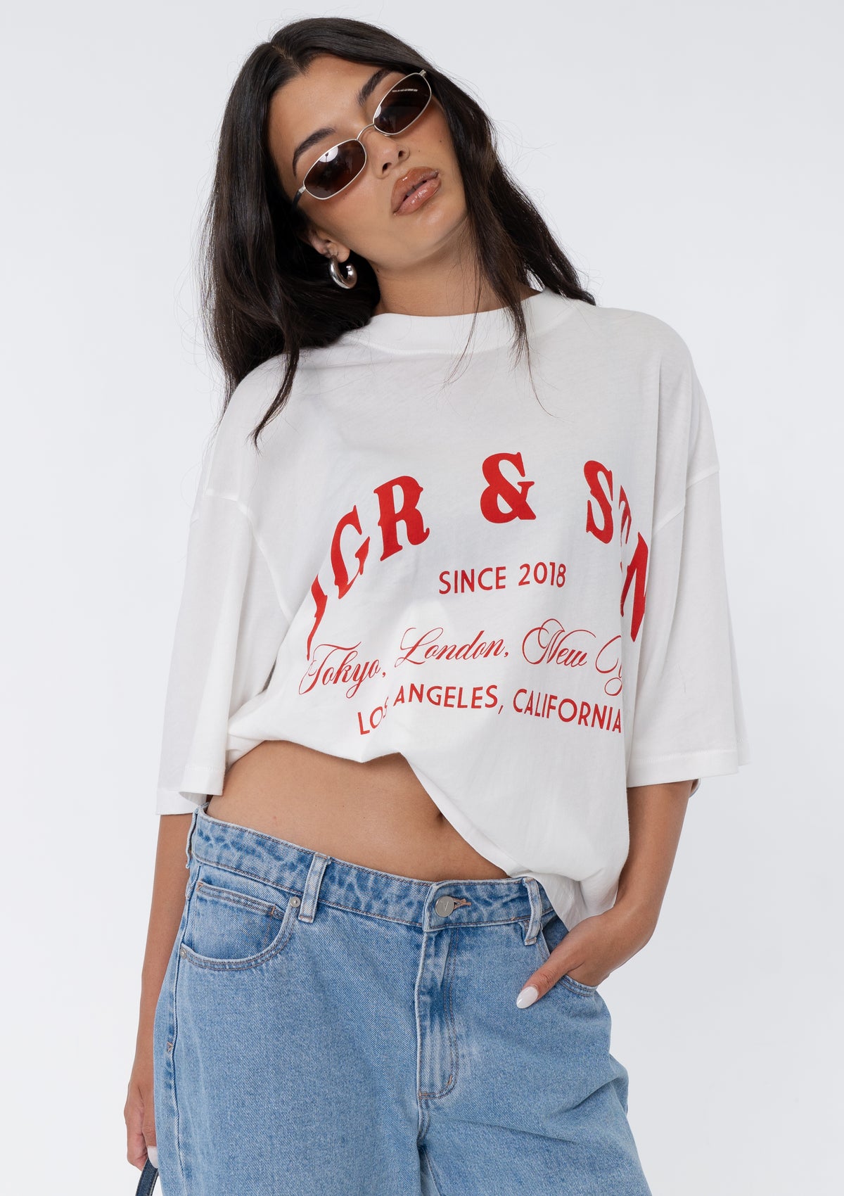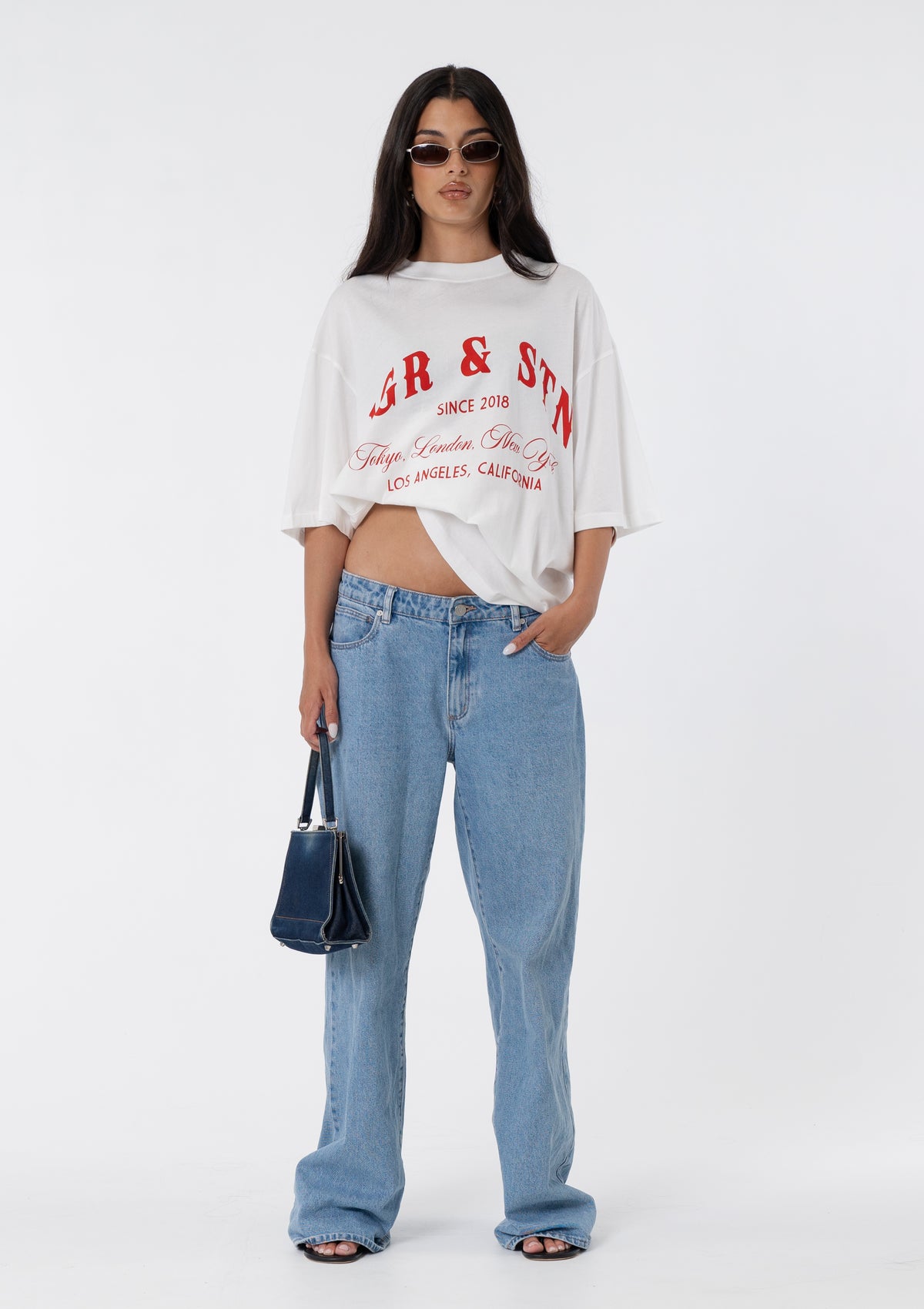 Introducing the JGR & STN Los Angeles Oversized Tee. Crafted in a soft, vintage-feel fabric and featuring printed graphics on the front.