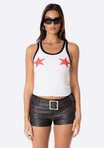 Introducing the JGR & STN Stassie Singlet. Designed to stand out from the rest. Featuring printed stars over the bust and ribbed stretch fabric.