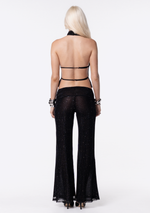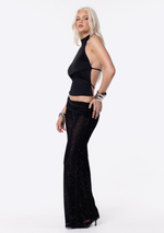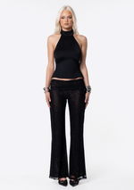 Introducing the JGR & STN Lucy Pants. The pants designed for party season. Made in a comfortable stretch mesh fabric and features a fold over waistband. The fabric has a subtle shimmer to make them stand out from any other black pant.