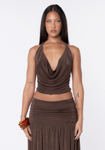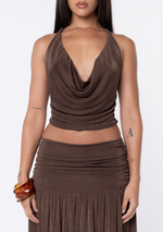 Introducing the JGR & STN Maria Halter Top. Featuring a cowl halter neck and backless design. Pairs perfecting with our Maria Maxi Skirt.