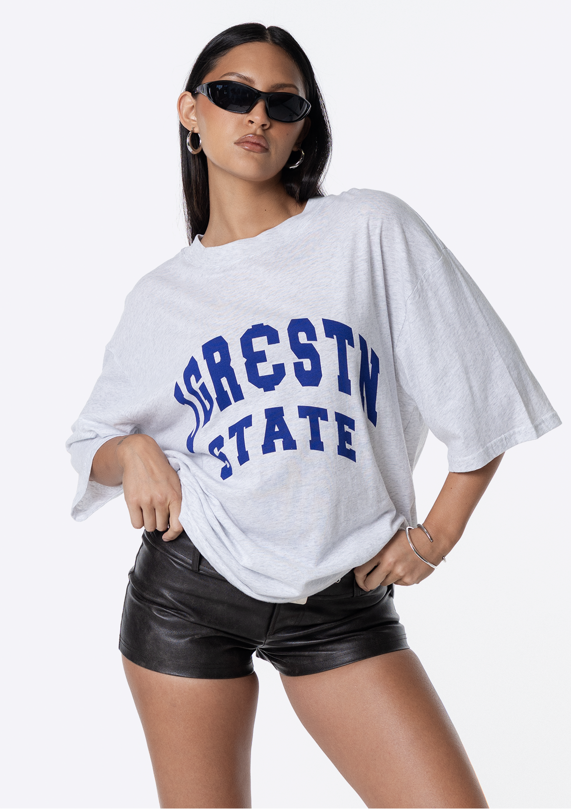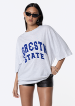 Introducing the JGR & STN Mimi Oversized Tee. Crafted in a soft, vintage-feel fabric and featuring printed graphics on the front.