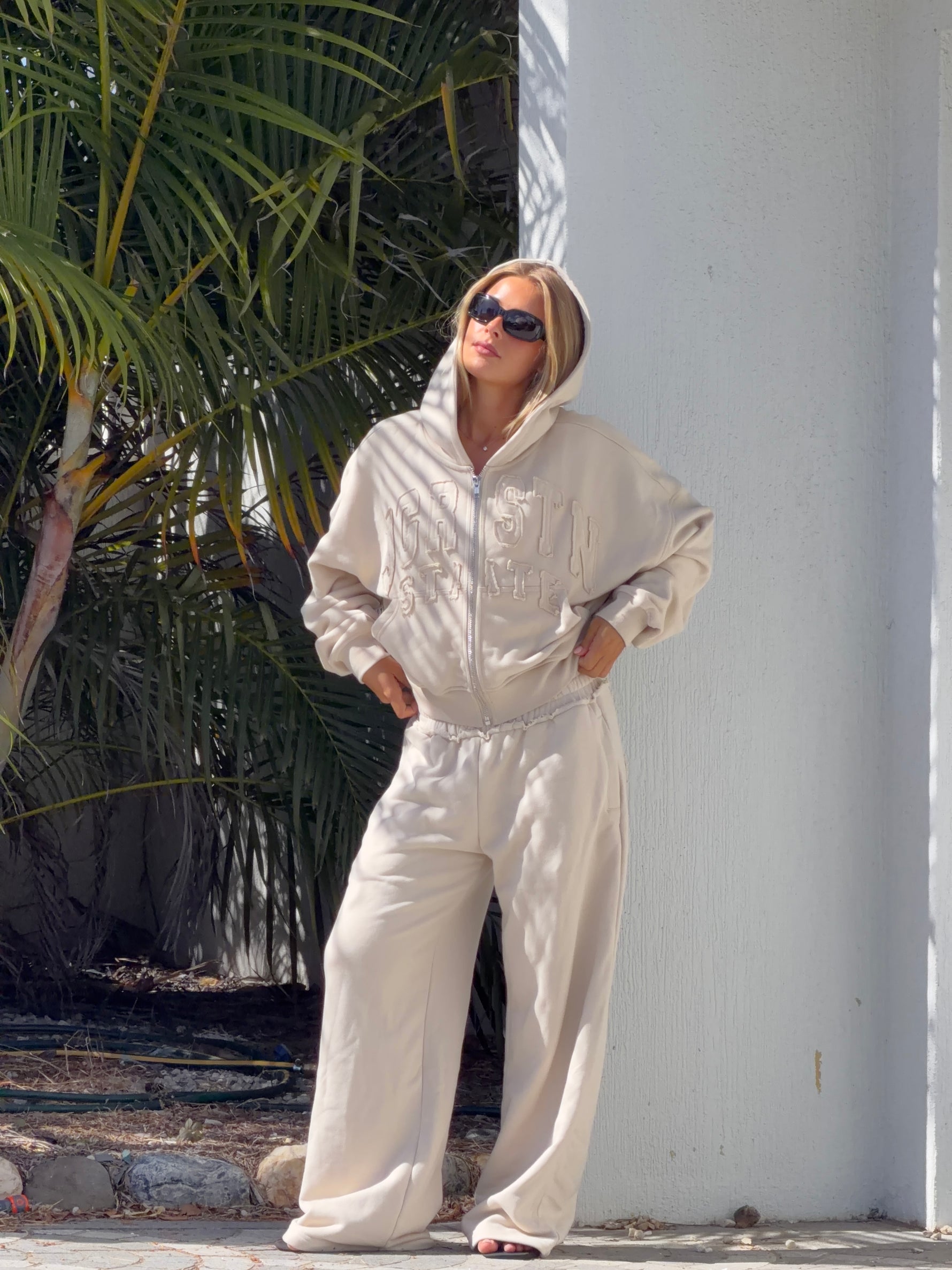 Introducing the JGR & STN Mimi Zip Thru Hoodie. A new colour of our best selling hoodie. Made from a heavy weight brushed fleece featuring a distressed applique branding across the front. Pairs perfectly with our Mimi Distressed Track Pant.