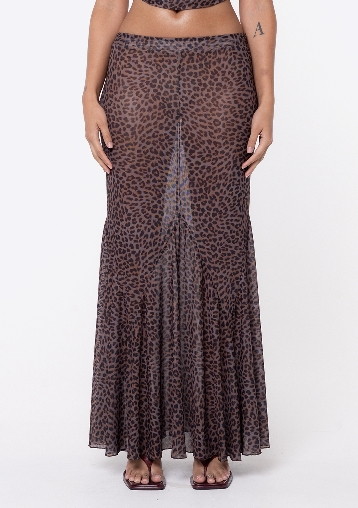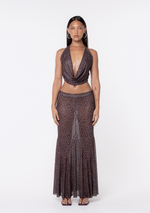 Introducing the JGR & STN Stevie Maxi Skirt. Crafted from lightweight, sheer mesh with an all-over leopard print, this style features a fitted waist that falls into a softly fluted hem for effortless movement. Designed to pair perfectly with the Stevie Halter Top.
